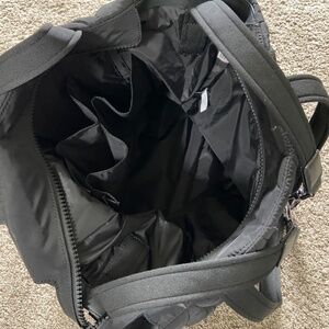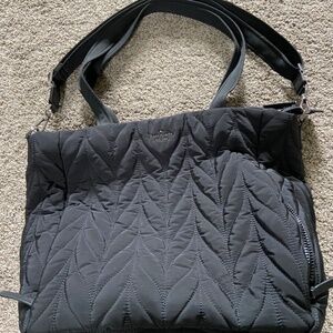 Black quilted Kate Spade diaper bag. 2 exterior zip pockets, 1 interior zip pocket and four compartments. Shoulder strap, two top handles and stroller straps. Change pad included. EUC, minimal signs of wear.