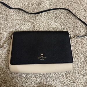 Kate Spade black and beige Crossbody bag. Small. Lightly used some interior staining, but otherwise great condition