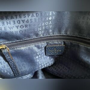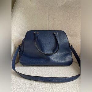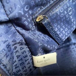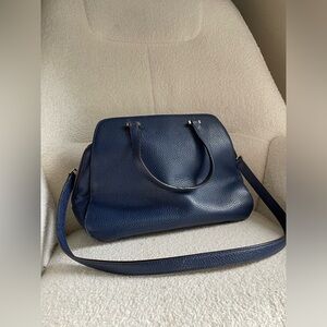 Chic navy leather satchel by Kate Spade. Features elegant design and practical compartments. Perfect for daily use.