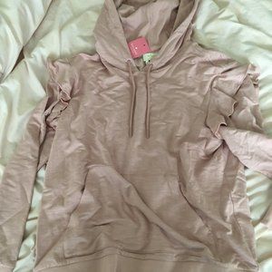 Kate Spade light pink terry ruffle hoodie sweater size medium nwt