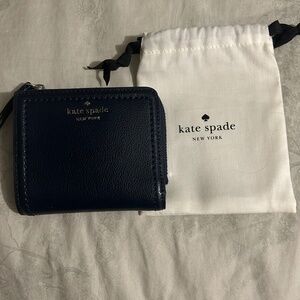 Kate Spade- navy blue leather small wallet/ card holder and change purse. Never used, excellent condition.