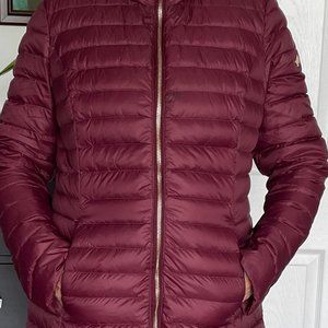 Kate Spade packable down coat jacket with hood in deep cherry pink red