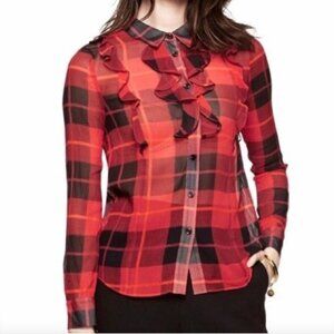 Kate Spade plaid ruffled semi-sheer blouse red black plaid size 4