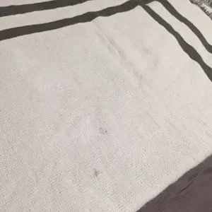 fair condition. has a couple marks on it (as seen in photo). was used as a throw for balcony seating. great warmth.