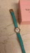 Gold tone and turquoise watch with mother of pearl face and crystal bezel. Sold with a pink kate spade box to keep it in. Genuine leather turquoise band.