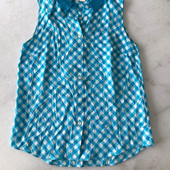 Kate Spade New York Sleeveless button down shirt / top / blouse with collar (blue & white gingham / checkered print)