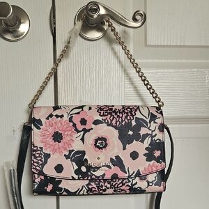 Kate Spade Pink and Black Crossbody Bag with Floral Design