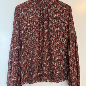 Beautiful high neck blouse with pinks, greens, whites & purples.
