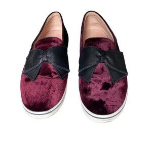 Kate spade Burgundy velvet slip on shoes bow Sneakers sz 8.5 / 39 flats