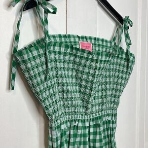 Stylish green checkered dress with tie straps. Ideal for casual outings.