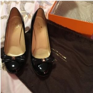 Kate spade black kaci wedge heels shoes size 6.5 new in box