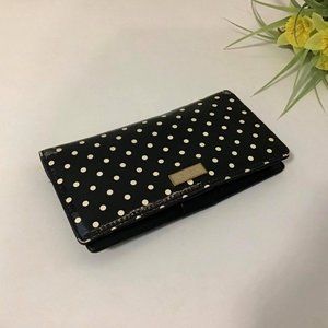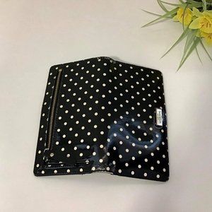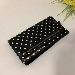 Gorgeous polka dot Kate spade ♠️ glossy leather versatile wallet! Secure your cards / coins with over 13 card slots/ coin zipper back. In used condition. Please see images for visible stains / scuffs . Otherwise have lots of life still.