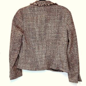 Beautiful preowned condition 90’s flare Kate Hill tweed blazer with fringing detail Sz M