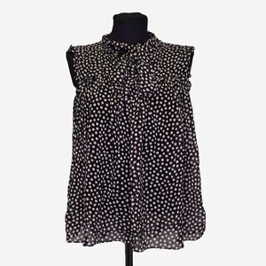 Cute flowy black and white polka dot tie neck sleeveless blouse from Kate Spade. Chiffon fabric with a tie neck detail.