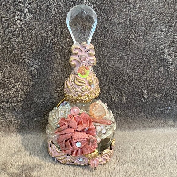 Katherine's Collection Vintage Victorian Bottle Decor Glass Beads Silk Metal Coral & Cream