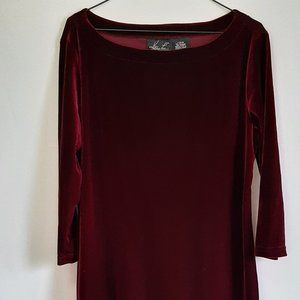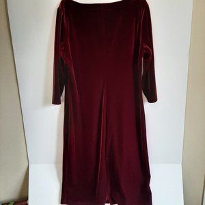 Kathie Lee Collection Burgundy Round Neck Stretch Velvet Long Sleeve Dress