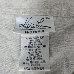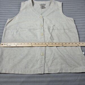 Kathie Lee Vest Womens 14W 16W Beige Linen Cotton Button Front Plus Size Casual