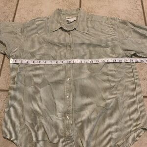 Kathie Lee Vintage 100% Silk Striped Button-Down Blouse Shirt Size 12 Green White