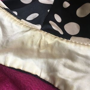 A few stains due to time. The fabric is yellowing over time. It has been in the closet for over 10 years. Looks like rayon but there is no label indicating the fabric.