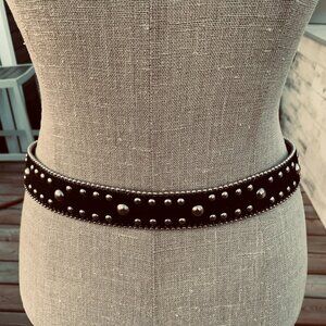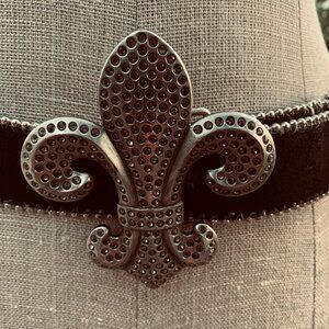 Kathy Van Zeeland Fleur-de-Lis Faux Suede Leather Studded Rhinestone Waist Belt