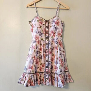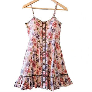 Katia Floral Print Pleated Sleeveless Mini Sundress Casual Dress Pink Size S