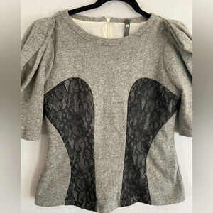 Katie Judith Wool Blend lace short sleeve blouse top Sz 38 (M)