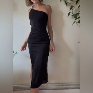 • Style: Bodycon midi with asymmetrical strap & ruching