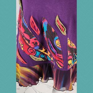 Katrin Leblond Purple Colorful Applique Peplum Midi Dress