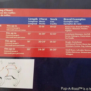 Size Small fits up to: 8 " length, 12-16" chest. 10-12" neck. Breed Examples: Bichon Frise, Brussels Griffon, Maltese,Pincher, Papillon,