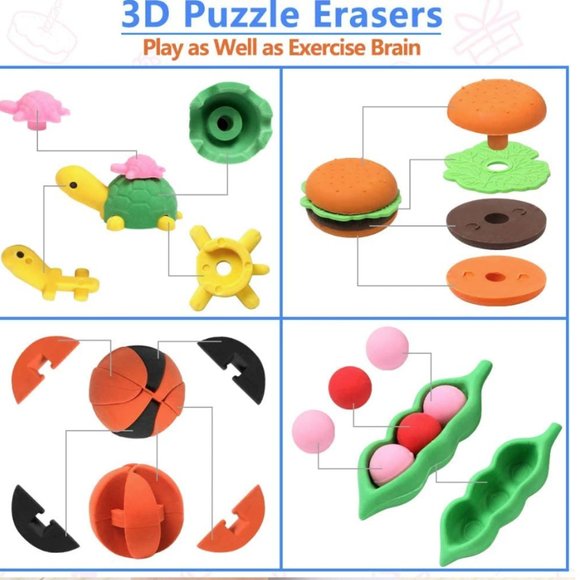 These mini 3D puzzle erasers are creative, fun and unique! Brighten up your pencil case and surprise your friends with these cute erasers.