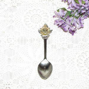 Nautical theme. Gold colored ship's wheel and anchor, with lots of detail, in front of a maple leaf on top. Kearney inscribed in spoon bowl.