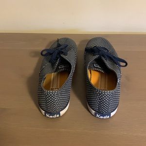 EUC Keds blue and white polka dot canvas shoes in women’s size 8 1/2.
