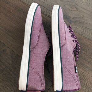 Keds Canvas Lace Up Denim Sneakers Purple/Pink w Teal Trim + Striped Laces Cushioned Insole