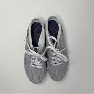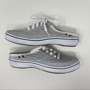 Keds Mule Sneaker Gray Stripe Canvas Slip On Casual Women’s Size 6.5