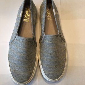 Keds Slip On Shoes - Grey Jersey Material w Gold