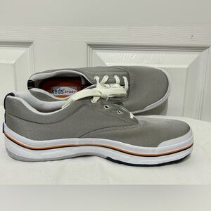 Keds Sport Gray Canvas Sneakers with White and Orange Accents