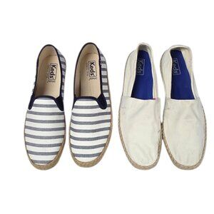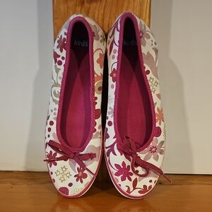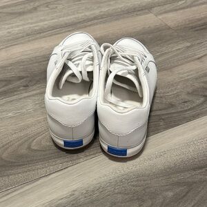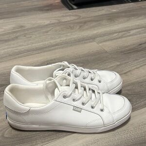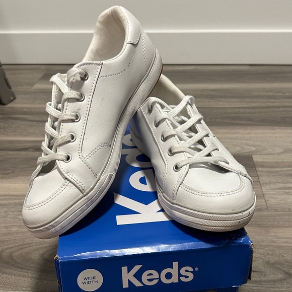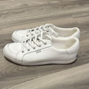 Crisp white Keds sneakers. Perfect for any outfit. Comfortable and stylish. Some signs of wear