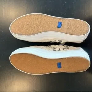 Chic cream sneakers with floral lace design. Ideal for casual wear. Comfortable and stylish.