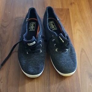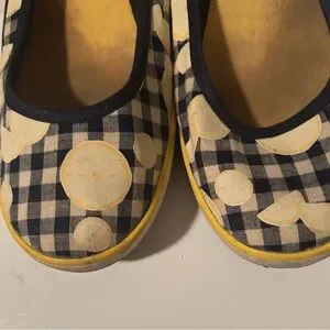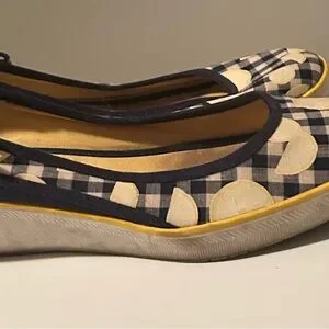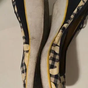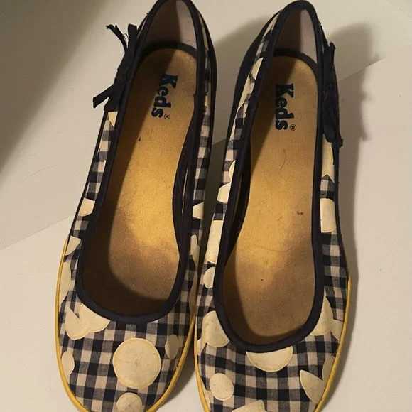 Stylish Keds flats with a navy checkered design. Features bold yellow accents. Ideal for casual wear.