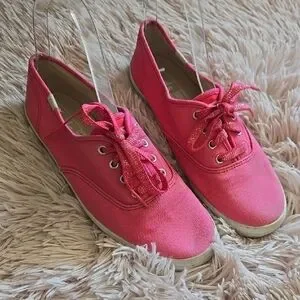 Keds Women's US 6.5 Spring Summer Coral Canvas Lace-Up Sneakers with Whitw Sole
