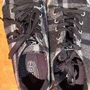 Keen Elsa plaid shoe in size 7.5. True to size. They have a fairly wide toe box, but it's not wide sizing. VGUC. Very minor wear on the rubber, soles in very good condition, no wear on the heels.