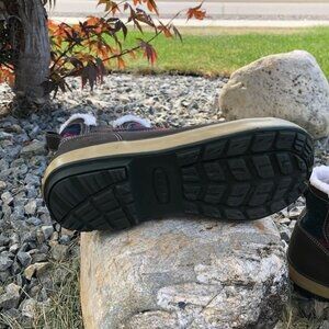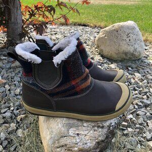 Hi Cathy. They are tagged size 9. European chart says a 9 translates to 39 or 40. I find them to be a roomy 9. The Sherpa lining adds warmth. Keen's description was a winter boot, however, I always wear thicker socks in colder weather. The rubber sole has good traction. Hope this helps. :)