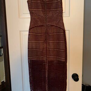 Keepsake Sweet Nothing Burgundy Lace Midi Dress Small