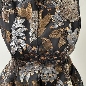 Keepsake The Label Wonderwall Sequined Peplum Top Sleeveless Black Gold Small S