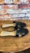 Kelly & Katie Black Hilda Flat Sandal Slide Sandals Vegan Leather Size 6 in great condition. A bit of wear on the bottom. Very slight crack at heel. It does not effect the wear.