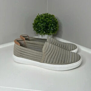 New condition, worn once. These slip-on sneakers have an airy mesh fabric upper, classy round-toe front, soft fabric lining, detachable padded insole for comfort, a sporty synthetic outsole and a supportive molded heel.