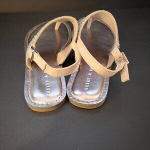 Adjustable buckle straps in back are a tan color