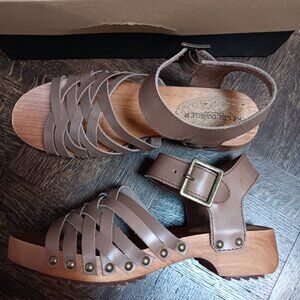 Kelsi Dagger Brooklyn Harling Clog Sandals - taupe leather, wood heel size 7 NIB