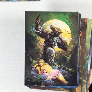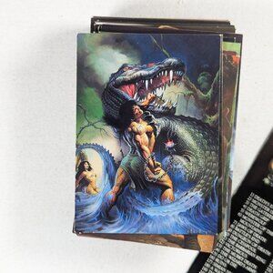 Ken Kelly Fantasy art card collection 2 from 1994. Great trading card set and fun as artists reference material. You could also gift them, frame them or use them for (miniature) crafts projects. This is the base set only, cards 1-90, WITHOUT the metallic cards MS#1-5 on the checklist
