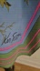 Ken Scott silk scarf with a vibrant floral print on a light blue background.